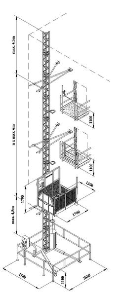 Подъемник грузовой мачтовый строительный с выкатной платформой 0,5х2,7м, г/п 500кг, максимальная высота подъема груза Н=до 100 м