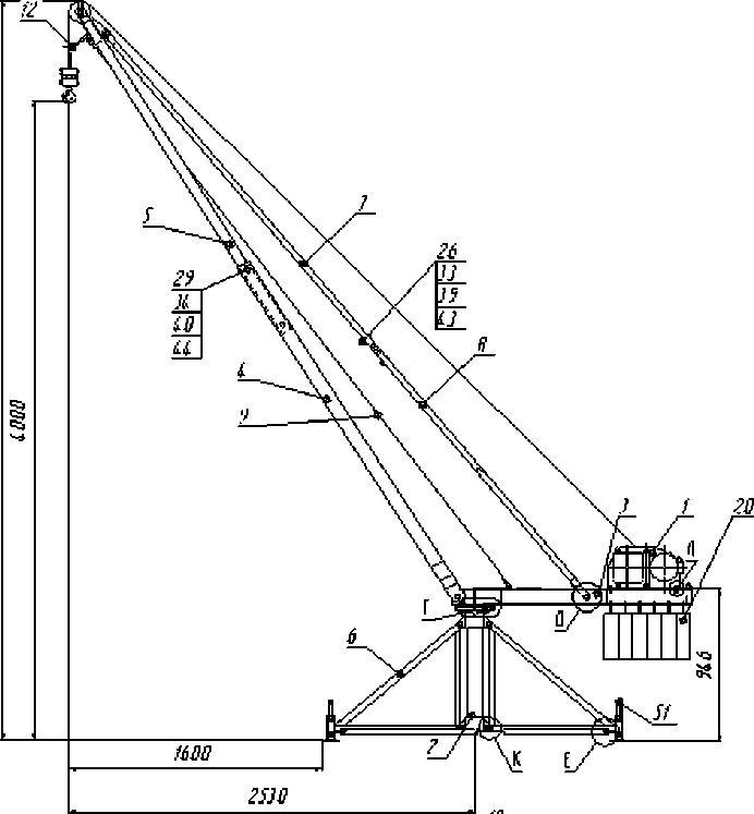 Кран является грузоподъемным механизмом, который монтируется непосредственно на месте эксплуатации. Площадка, на которой установлен кран, должна иметь уклон не более 3°. Если уклон больше, то кран необходимо выставить при помощи домкратов 51.