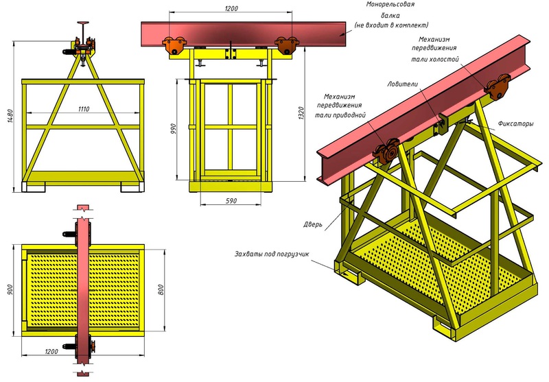 Люлька Л-1-120 предназначена для ремонта и обслуживания подвесного крана и путей..