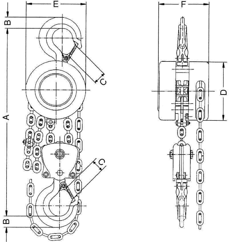 Тали ручные шестеренные цепные ТРШСК - 0,5 : основные размеры