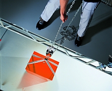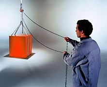 Поворачивающийся на 360 град. поворотный кожух тяговой цепи, с направляющими для цепи, позволяет работнику управлять движением груза из любого положения, находясь в удалении от самого груза или находясь над ним, что увеличивает возможности использования тали ТРШСМ-0,5.