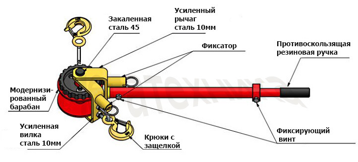 ЛР-0,63. Лебедка рычажная ЛР-0,63 г/п 0,63 т трос 6,0 м
